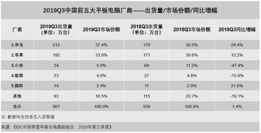 平板电脑也拿下!华为三季度在华出货量首超苹果